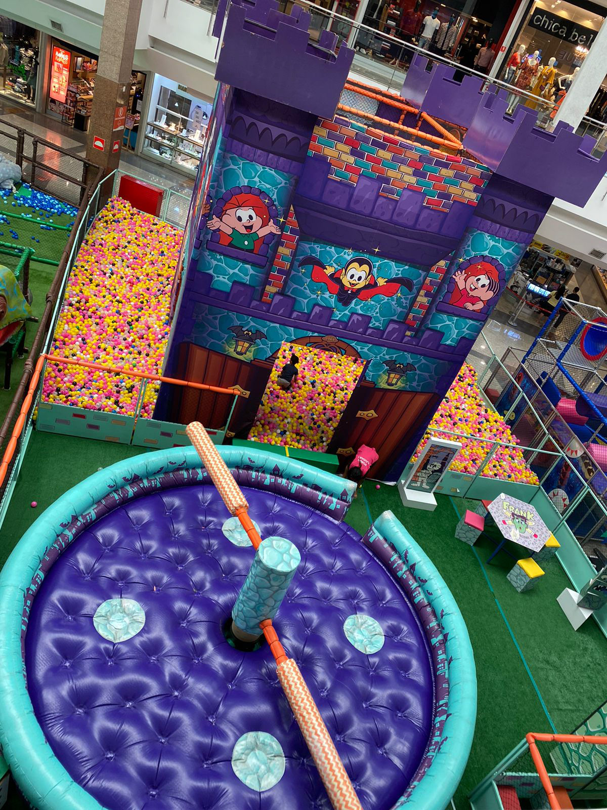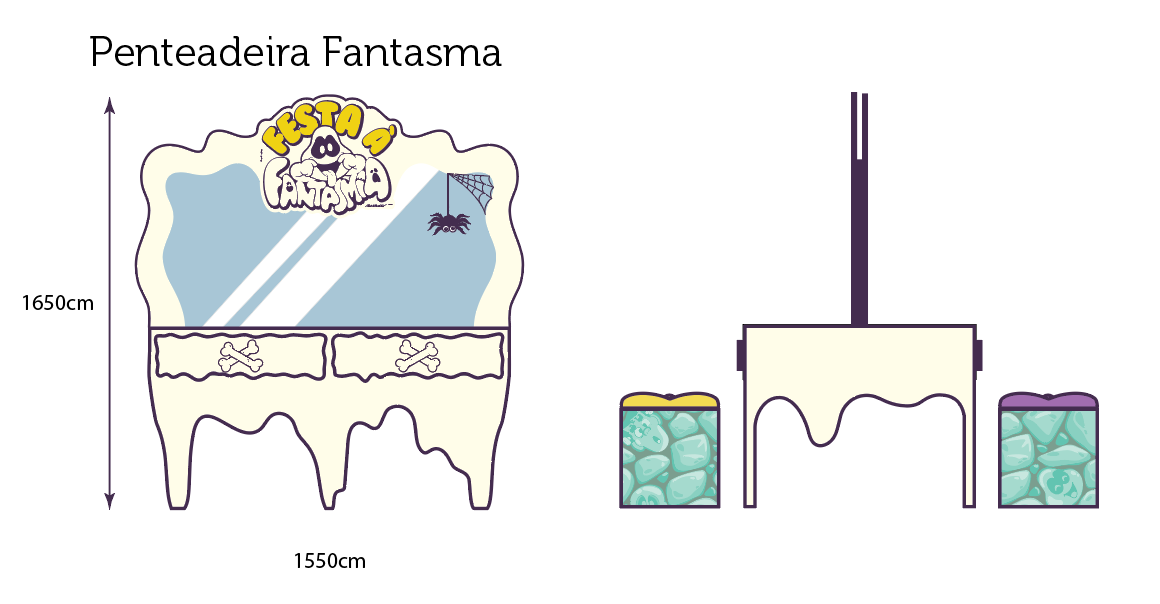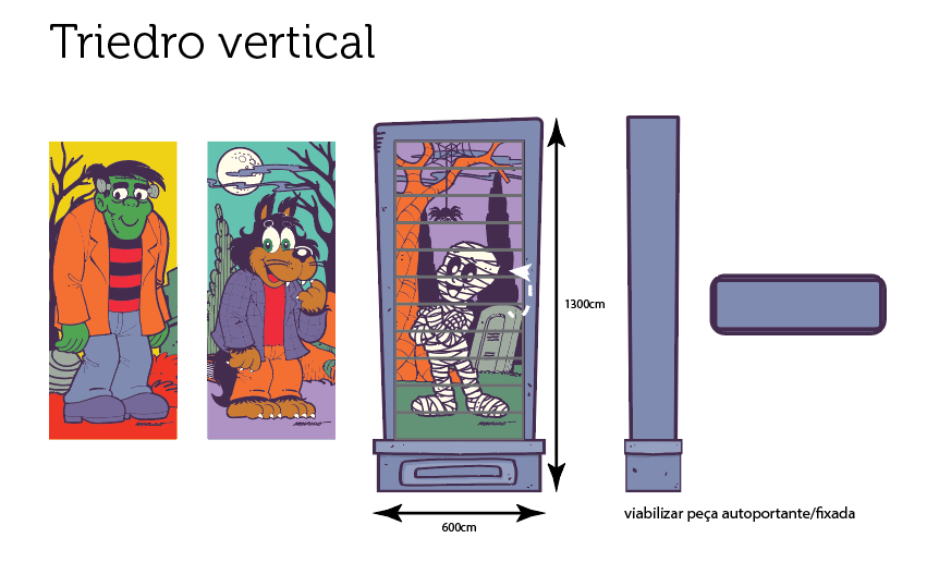 O nosso "Castelo" é erguido em madeira e toda a tematização, impressa em tecido, "encapa" a estrutura, dando esse aspecto das texturas bem cartum, típico da Turma da Mônica, tendo montagem e desmontagem simplificada e econômica, ainda assim grandiosa na hora de chamar atenção para o produto. É preciso ter em mente que nem sempre temos os maiores orçamentos disponíveis, e é aí que a criatividade chega entregando tudo!